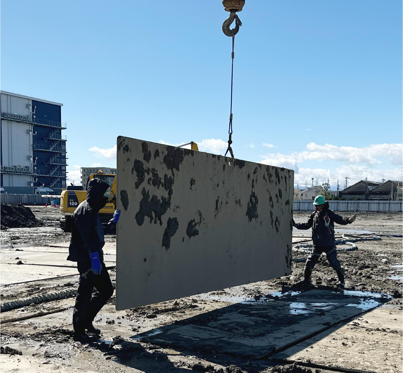 株式会社中部基礎では、穴を掘ってそこへセメントを打設することで地中に杭を打った状態を作る「柱状改良」と呼ばれる工法や、建物を解体する際の杭抜き工事なども得意としており、幅広い技術が身に付きます。