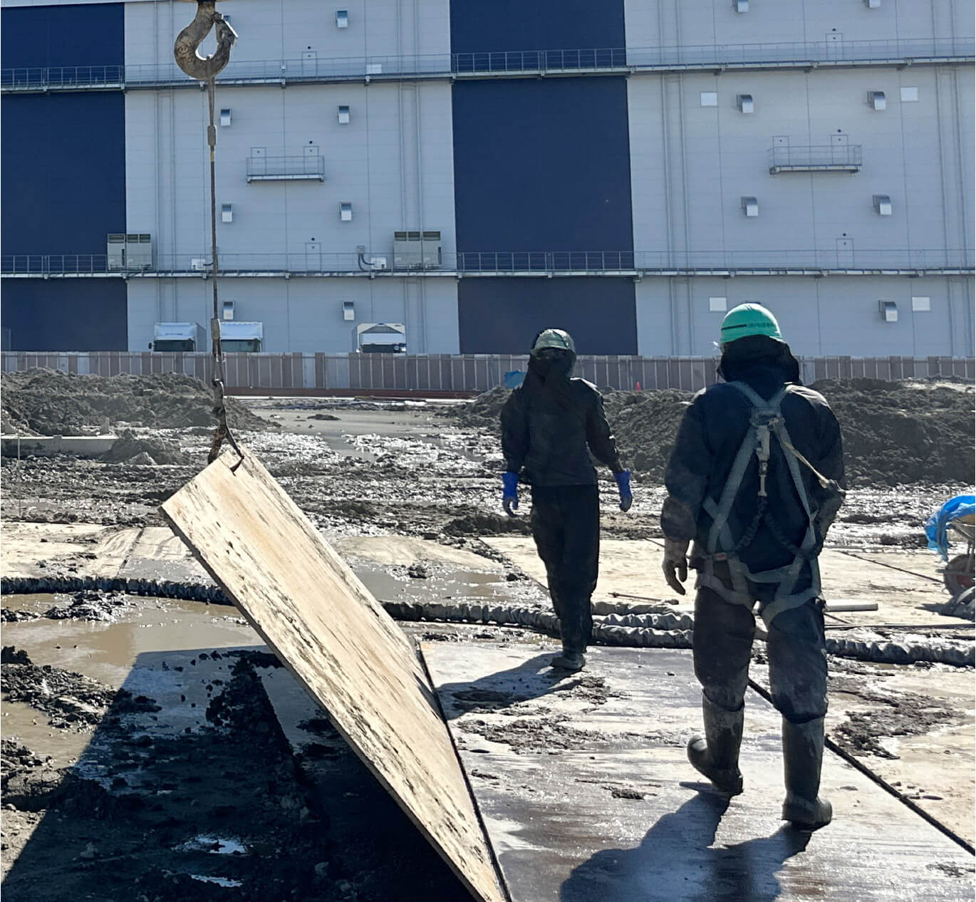主なエリアは愛知県、岐阜県、三重県の東海3県。株式会社中部基礎では物流倉庫や水処理施設をはじめとする様々な現場で杭打ち工事を行っています。
